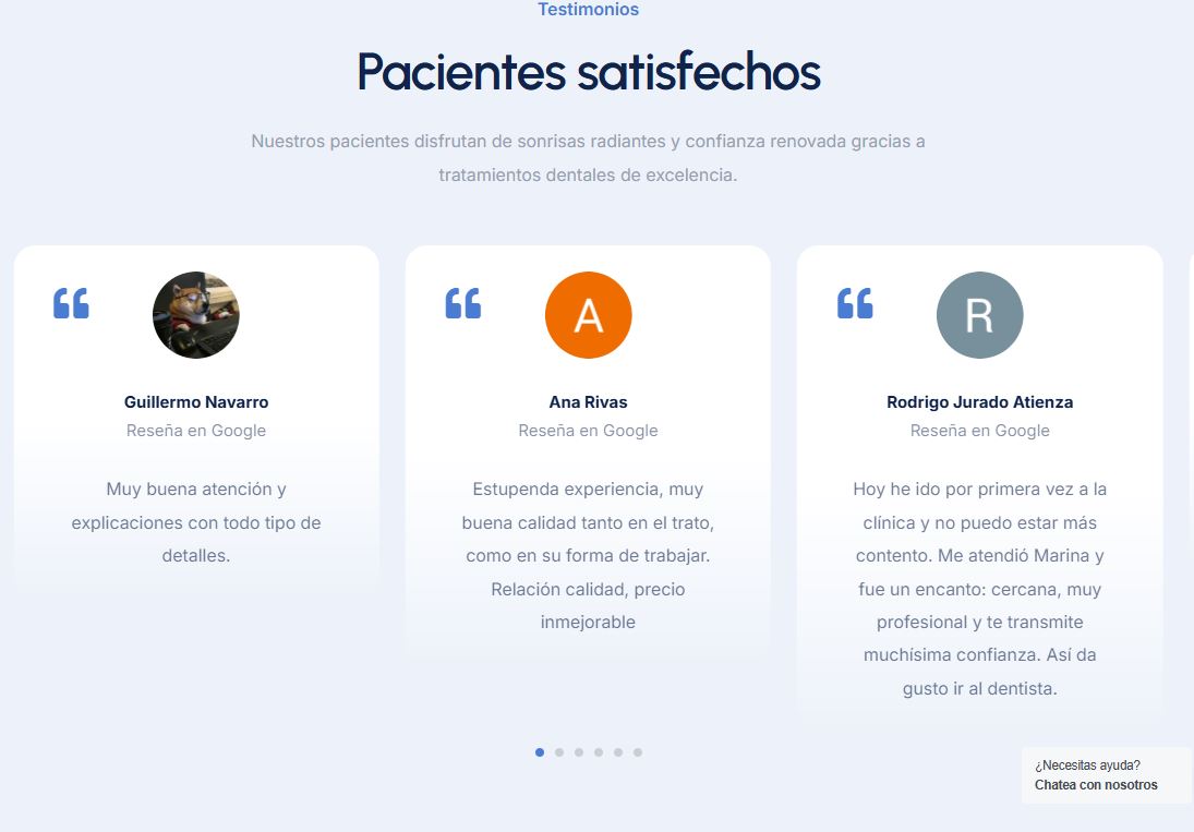 El posicionamiento en Google es clave para captar pacientes de tu zona. Optimizamos tu web y tu ficha de Google Business Profile para que aparezcas en los primeros resultados cuando alguien busca un dentista en tu ciudad.